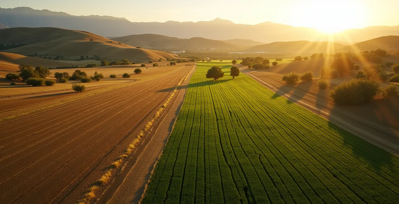 Este es el corazón de la agricultura regenerativa. No es un recetario de técnicas, sino una nueva forma de pensar y colaborar con la naturaleza. Es entender que tus plantas son constructoras de suelo, que tu ganado puede ser un regenerador de praderas y que cada gota de lluvia es un tesoro a cosechar. Este artículo no te dará una lista de tareas, sino que te abrirá los ojos a los mecanismos biológicos que puedes poner a trabajar para ti. Exploraremos cómo la fotosíntesis, el pastoreo, el diseño hidrológico y la integración de árboles no son prácticas aisladas, sino las piezas de un puzle que, una vez ensamblado, transforma tu finca en un motor de creación de suelo, agua y biodiversidad, aumentando tu rentabilidad y tu resiliencia ante un clima cada vez más incierto.